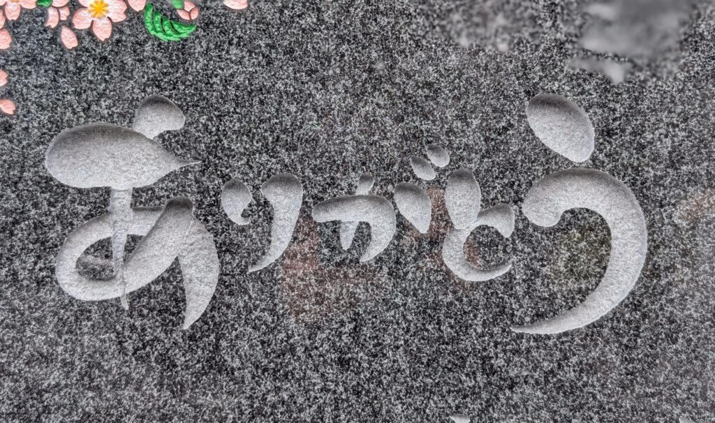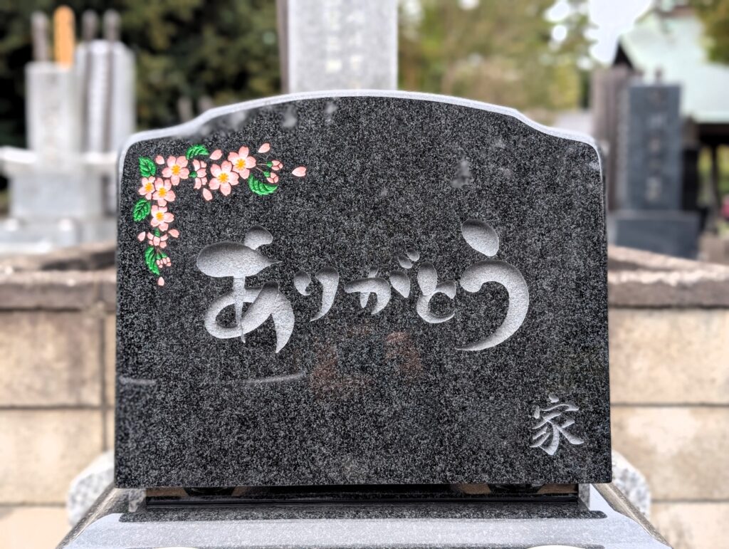 桜の彫刻と「ありがとう」が美しい棹石正面