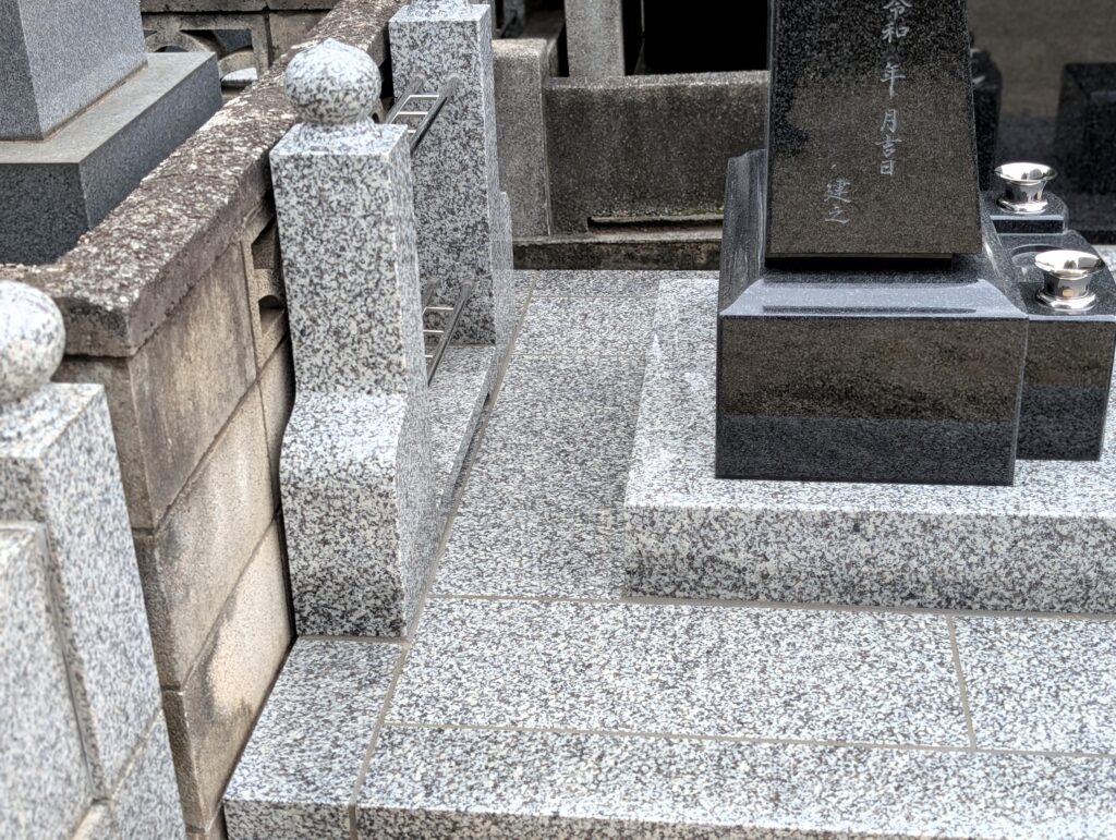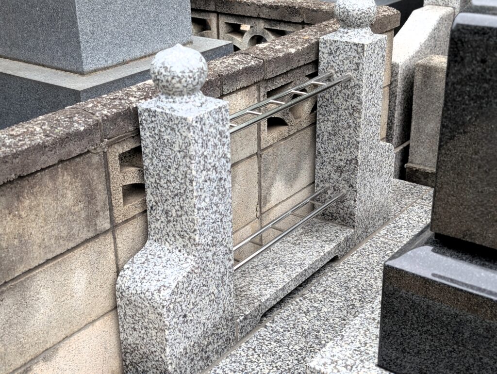 外柵は高さを抑え、日々のお手入れを想定したやさしい設計に。通路との段差も控えめで、落ち葉掃きや拭き上げが短時間で済みます。ご高齢の方でも安心してお参りいただける、やわらかな動線を意識しています。