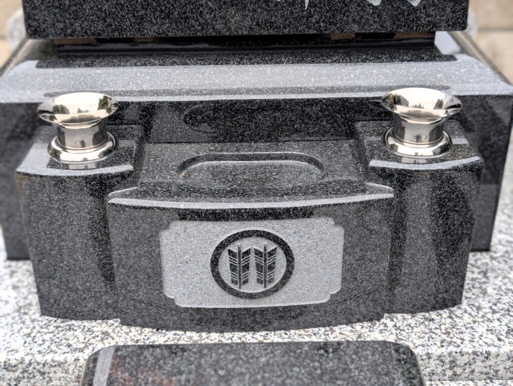 塔婆立ては石柱とステンレスの組み合わせです。部品が少なく機能性と耐久性を両立します。こちらも全体的に丸みを帯びた仕上げになっています。