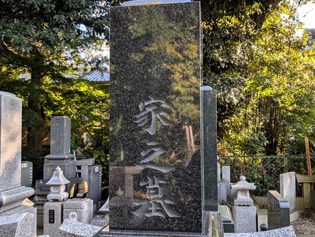守谷市のお寺で黒御影の重厚な和型墓石を建立しました|吸水率が低く綺麗が続く黒御影石