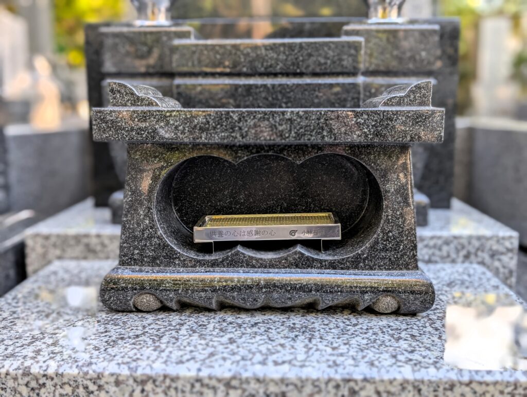 経机型香炉 お供え物スペース 上部がフラットな経机型なので、線香だけでなく菓子や果物も安定して供えられます。