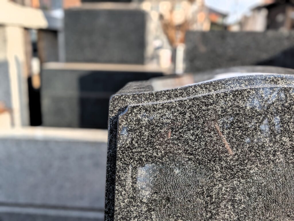竿石上部:額縁加工+丸みのデザインで、輪郭がきれいに見える仕上げ