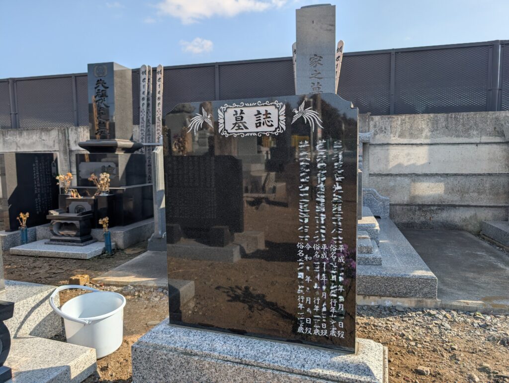今回は、小美玉市の共同墓地にて、墓誌への追加彫刻工事を行いました。 墓誌上部の左右に、縁起の良い象徴として知られる「鳳凰」を字彫りで彫刻させていただいた施工事例をご紹介します。