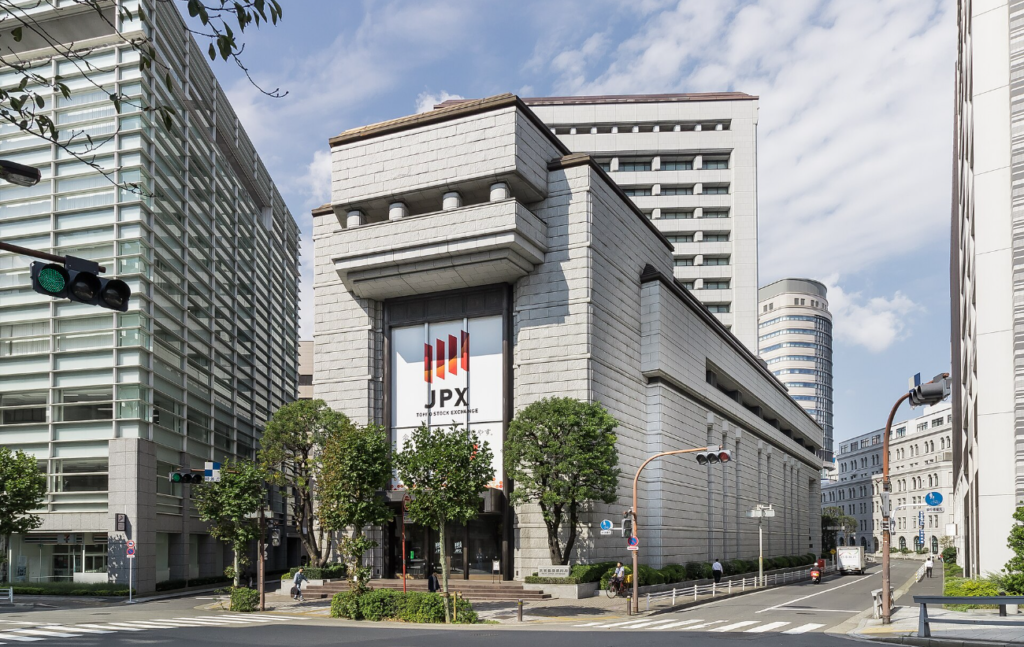 もう少し東へ。兜町の東京証券取引所ビル周辺に行くと、石の重厚感はさらに分かりやすくなります。平和不動産の歴史ページで、「1982年着工、1988年に全館竣工した新東京証券取引所ビルについて地上15階建、最高級の稲田石を使用した重厚な石壁」と表現しています。