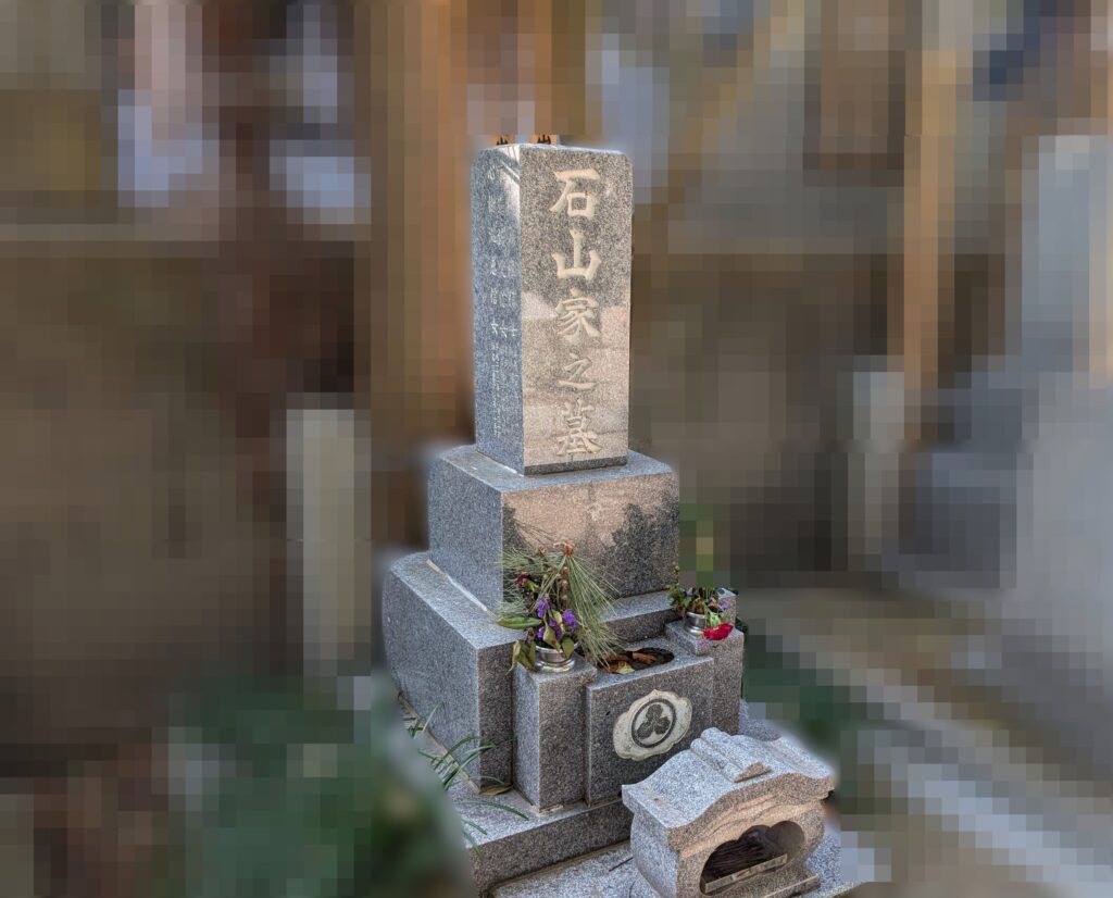 お墓全体を見ると、石塔・台石・花立・香炉などがまとまった伝統的な形のお墓です。今回は弊社で建立したお墓ではありませんでしたが、施主様がお手を合わせて供養されるお手伝いができることは、石材店として大変ありがたいことです。