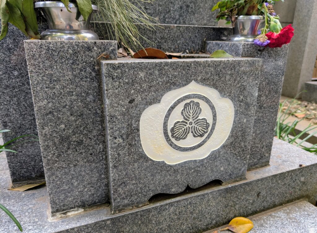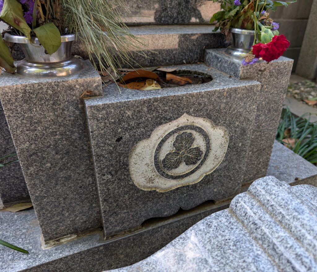 家紋部分も白い塗装が薄くなっていました。家紋はお墓の印象を引き締める大切な部分ですので、文字と同じくきれいに仕上げていきます。